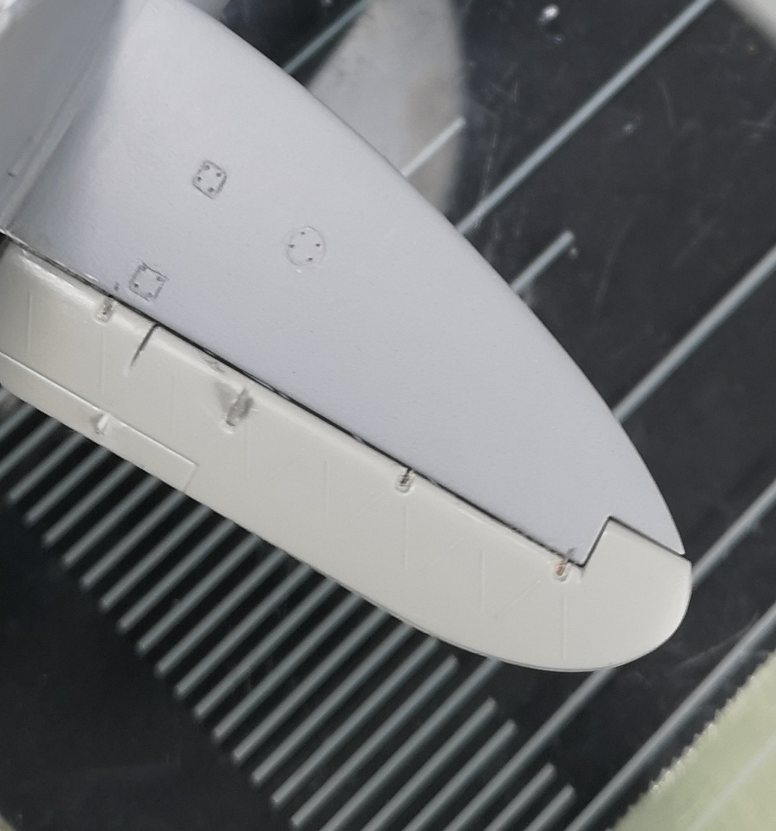 The first job to be tackled was to lengthen the wingspan by about five millimeters on each side since, as the modelers well know, the two kits have this defect. At the same time, we have emphasized the prominence of the aileron and rudder framing. We then tackled the construction of the boots by making some detailed improvements such as the five accessibility hatches to the watertight bulkheads. Afterwards we dedicated ourselves to the reproduction of the interiors, in particular the cockpit.